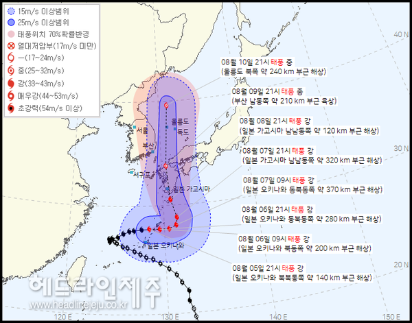 태풍은 일본 규슈 남쪽 해상으로 진출한 후 다음 주 월요일인 7일에 급격히 북상할 것으로 예상됩니다. 규슈 지역 주민 여러분께서는 현지의 기상 정보를 수시로 확인하시고 필요한 예방 조치를 취하시기 바랍니다.